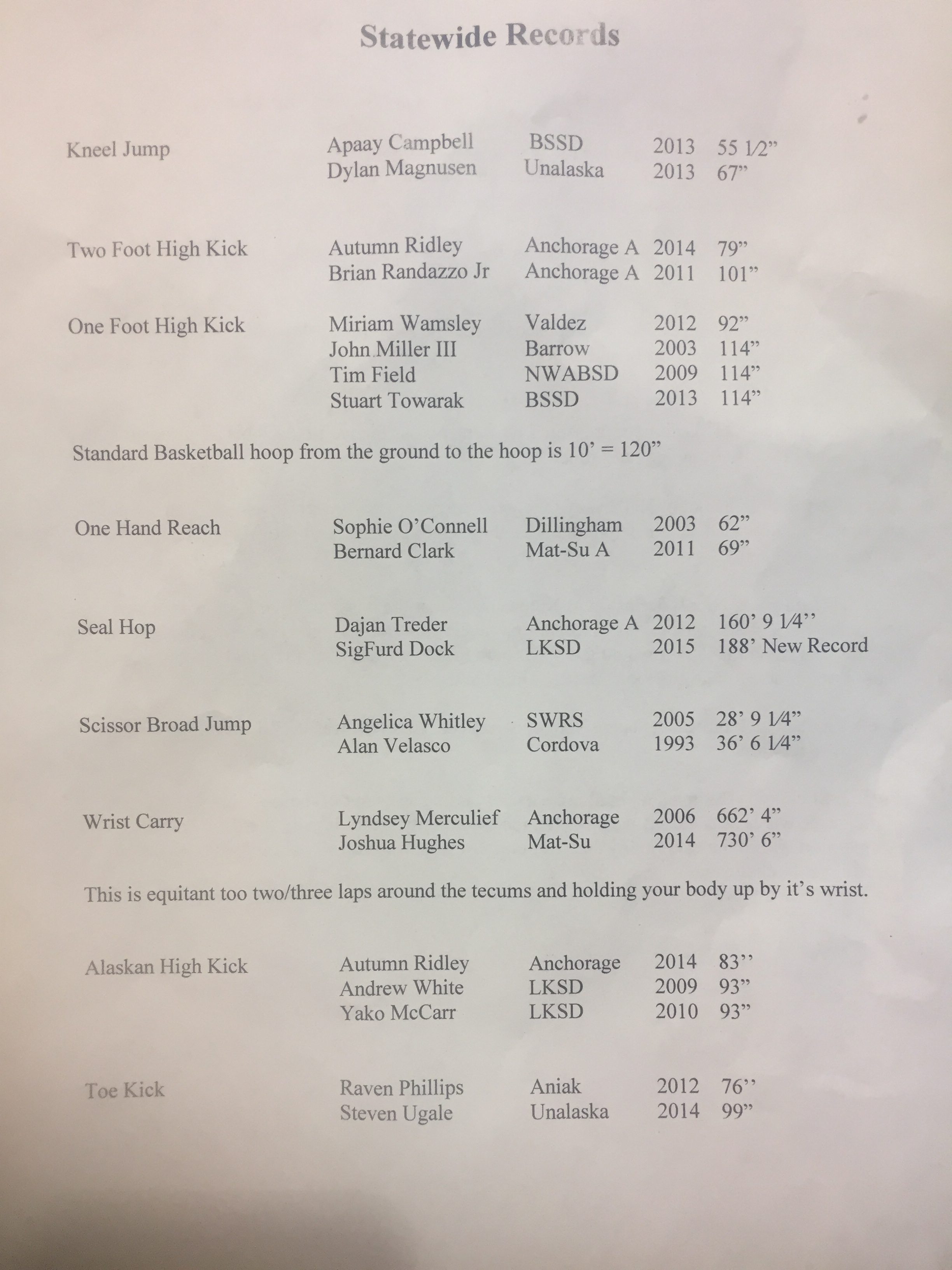 Here are some of the sports played during the Haskell Arctic Games that were performed by the Alaska Club: