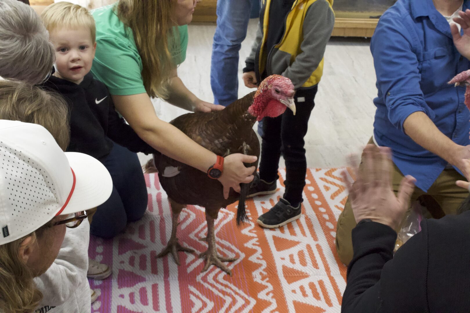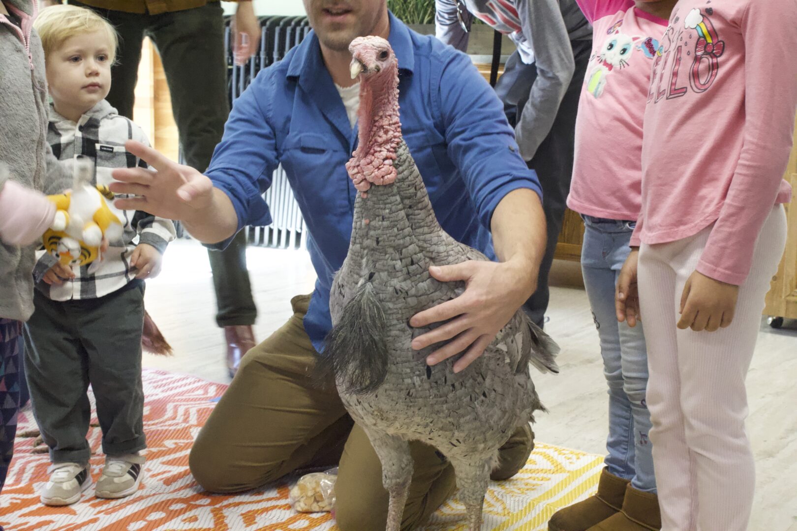 Admission was free and open to the public, encouraging people of all ages to learn more about turkeys and their behaviors. The nature center quickly filled with excited families, and the atmosphere was full of laughter, curiosity, and plenty of “oohs” and “aahs” from the kids. Many children were fascinated just watching Gobbles and Waddles strut around, and their excitement added to the warm holiday spirit.