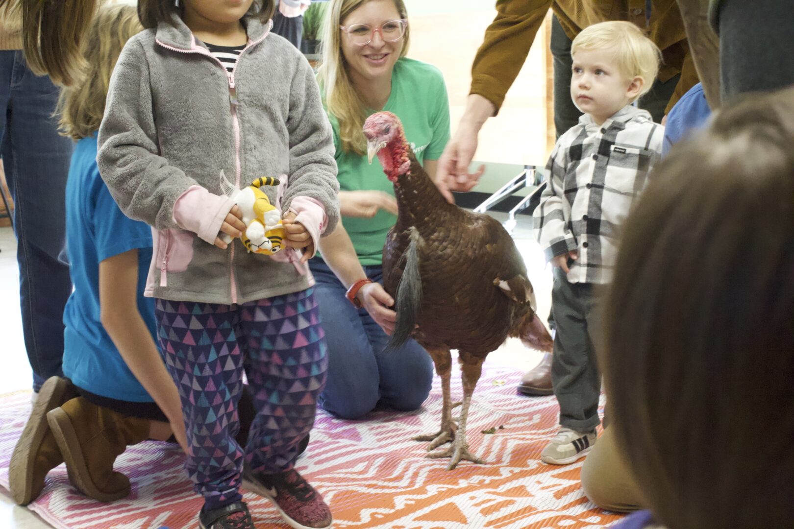 To make the event even more engaging, Prairie Park Nature Center hosted a special turkey-themed story time. Children gathered around to hear Thanksgiving stories read aloud, with Gobbles and Waddles right there beside them. The mix of storytelling and live animals created a unique experience that blended fun with learning.